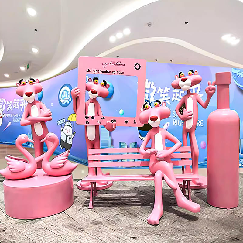 çin toptan tasarım Cam fiber çizgi film pembe panter heykel karikatür heykel ile dekore edilmiş açık park fabrika Ve
